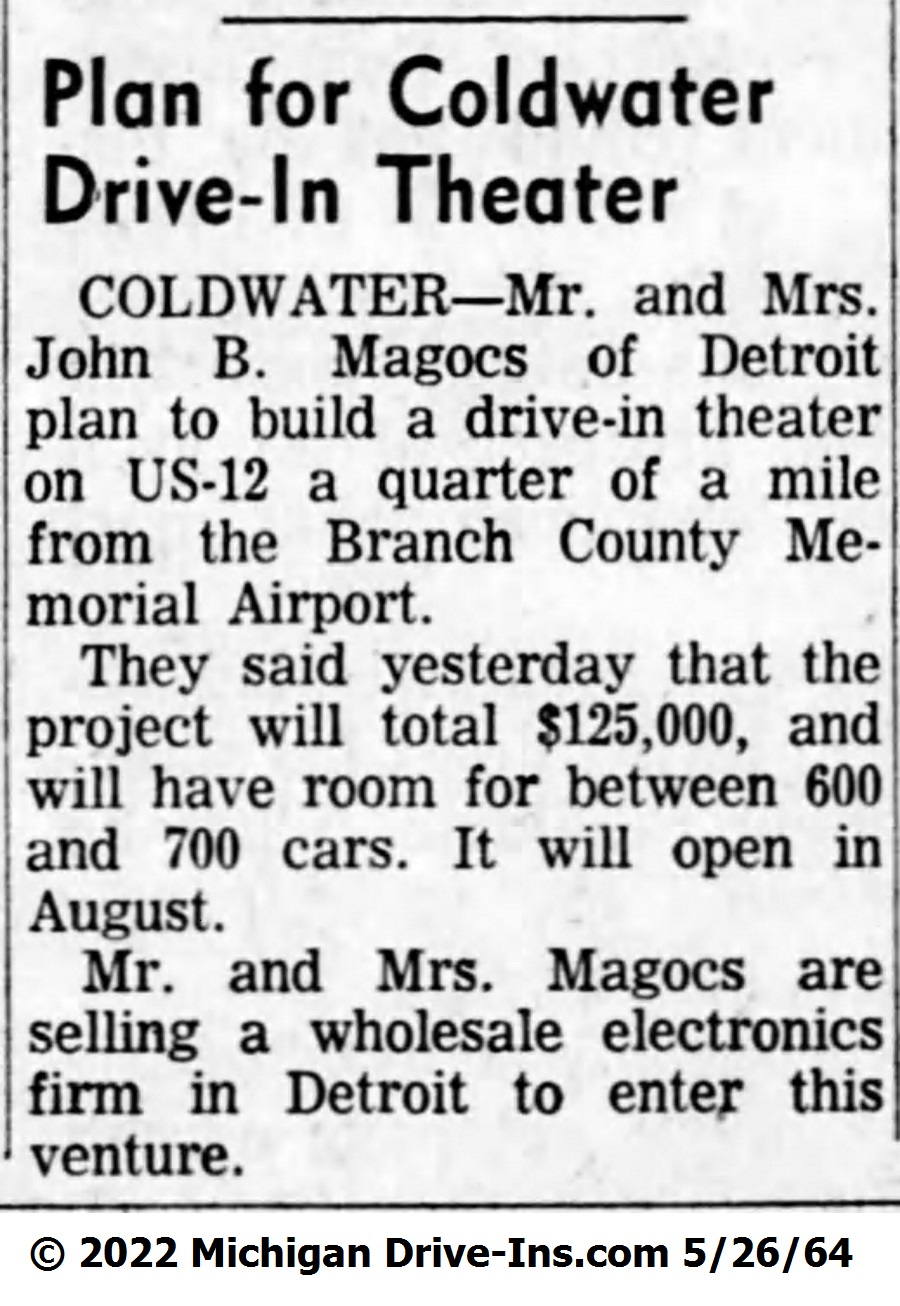 The 1000 Car, single screen Drive-In opens on August 21st, 1964 by owner-operators John and Mary Magocs.